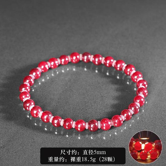 DL 1998胖东来品质朱砂手串原石朱缘聚手链男女晶体软红宝石5mm圆珠全透 规格:直径5mm重约:18.5g